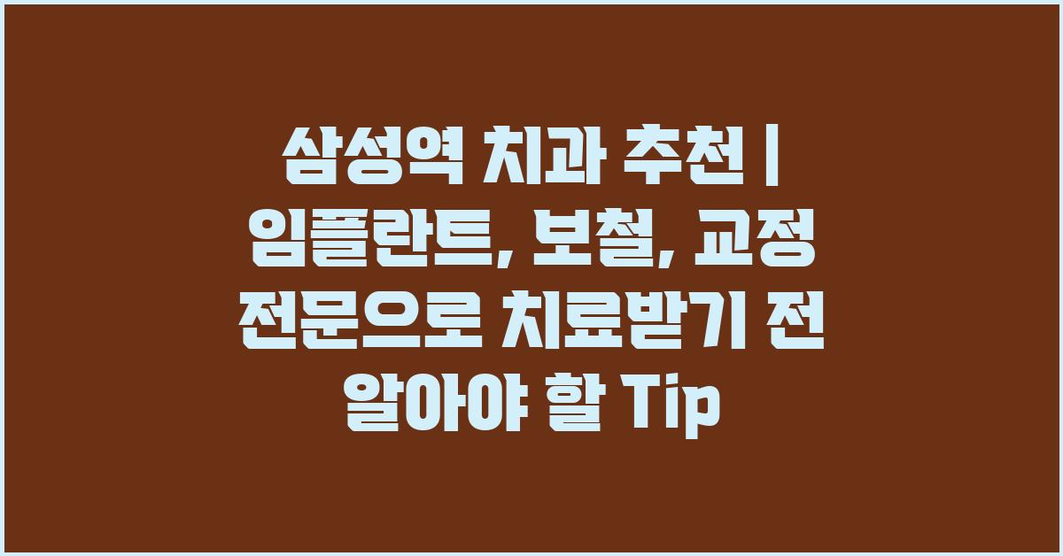 삼성역 치과 추천 | 임플란트, 보철, 교정 전문을 고려할 때, 먼저 체크해야 할 목록이 있습니다. 이 목록은 여러분이 후회 없는 치과를 선택하는 데 도움을 줄 것입니다. 대부분의 사람들은 치과에 가는 것을 두려워하지만, 알맞은 정보를 가지고 있다면 그 두려움은 줄어들 수 있습니다. 치과를 선택하는 과정에서 어떤 기준을 세워야 할까요? 경험자들의 조언을 참고하는 것이 좋습니다.