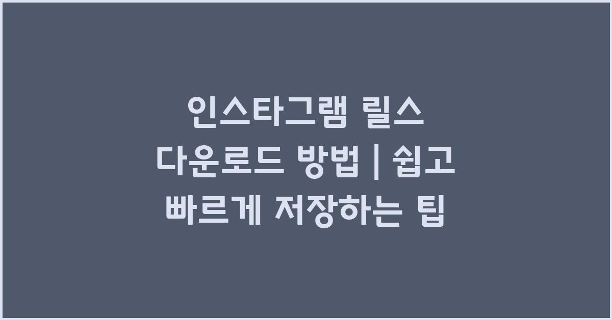 📌 인스타그램 릴스 다운로드 방법 | 간편하고 빠르게 저장하기