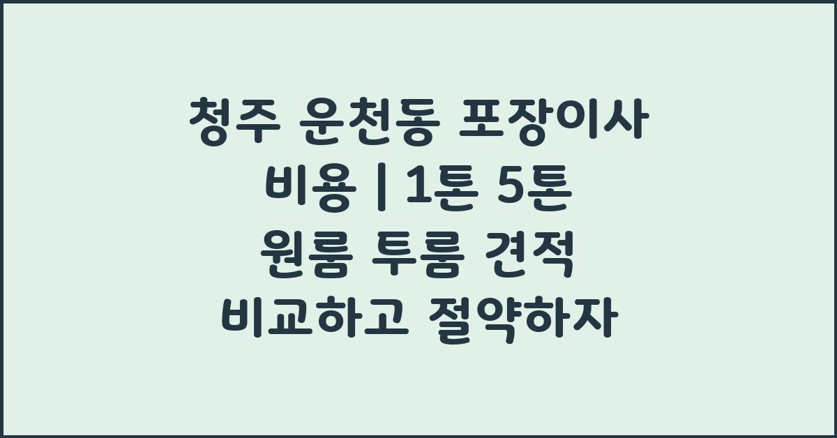 🛠️ 청주 운천동 포장이사 비용의 기본