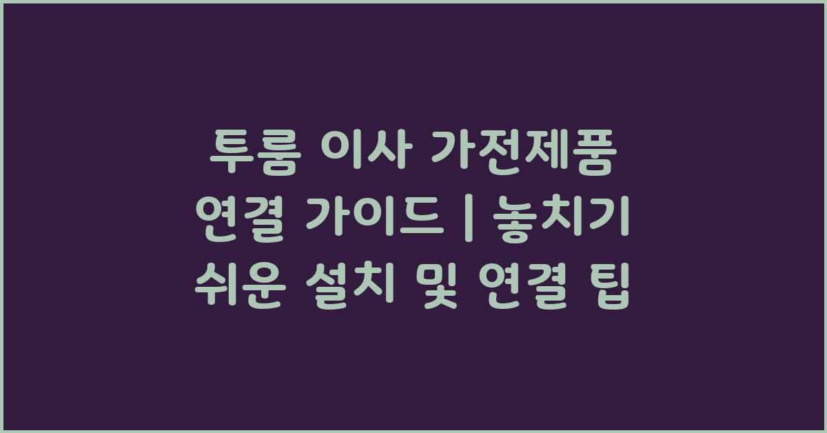 이러한 팁들을 잘 기억해두면 여러분의 투룸 이사후 가전제품 설치가 한층 매끄럽고 편안해질 것입니다. 이제 여러분의 새로운 집에서 즐거운 삶을 기대해 보세요!